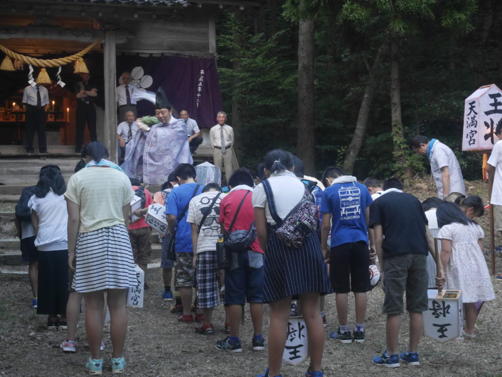 先に書いたようにこの日は白山神社例祭の宵宮でもあり、社殿にはたくさんの氏子の皆さんが揃っていて、子供たちを激励している。